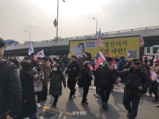 이날 오후는 영상 9도 가까이 오르며 포근했다. 밝은 얼굴로 윤 대통령 구속 취소 사유에 관해 이야기하던 한 지지자는 “겨울은 너무 추웠는데 마침 오늘은 날이 아주 따뜻하네”라고 옆에 있던 다른 지지자에게 말했다.