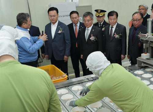 ▲ 법무부는 7일 모범수형자들이 기업체에 취업해 자율적으로 통근하며 사회적응 훈련을 받는 시설인 희망센터를 강원도 홍천에 개소했다고 밝혔다. 홍천희망센터는 수형자의 안정적인 사회 복귀 지원과 중소기업의 만성적인 인력난 해소를 위해 법무부와 중소벤처기업진흥공단이 체결한 업무협약의 첫 성과로, 센터의 중간처우 대상자는 식품 가공·포장 작업에 투입돼 하루 8시간·주 5일 근무하며 작업장려금을 지급받게 된다. 김석우 법무부 장관 직무대행은 "희망센터가 성공적인 사회복귀 모델이 되도록 관심과 지원을 아끼지 않겠다"고 말했다. (서울=연합뉴스)
