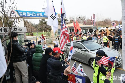 7일 법원이 윤석열 대통령에 대한 구속취소 결정을 한 가운데 경기 의왕 서울구치소 앞은 지지자들이 윤 대통령이 석방되기를 기다리고 있다. 양회성 기자 yohan@donga.com |