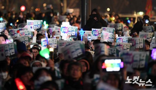 법원이 윤석열 대통령 구속취소 결정을 내린 7일 오후 서울 서십자각터 인근에서 시민들이 법원의 윤 대통령 구속취소 결정을 규탄하고 있다.저작권자 © CBS 노컷뉴스 무단전재 및 재배포 금지