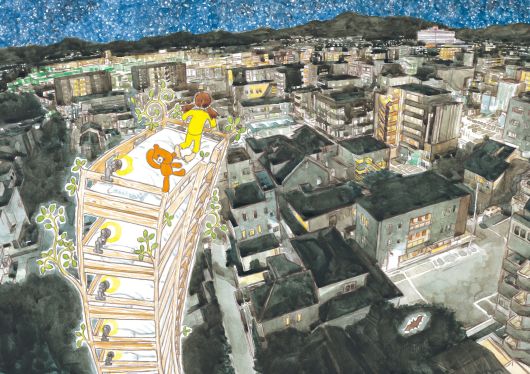 오빠가 배앓이로 입원한 밤에야 그토록 바랐던 침대 위층은 동생 차지가 됐다. 혼자 거기 누워 보지만 쓸쓸하다. “이층 침대야, 병원에 데려다 줘!” 오빠처럼 말하자, 천장이 열리고 별이 쏟아져 들어온다. 침대는 도시의 밤하늘을 가로지르며 한없이 늘어나기 시작한다. 오빠가 입원한 병실을 향해.