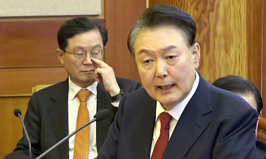 윤석열 대통령이 지난달 25일 서울 종로구 헌법재판소에서 열린 자신의 탄핵심판 11차 변론에서 최종 의견 진술을 하고 있다. 헌법재판소 제공 |