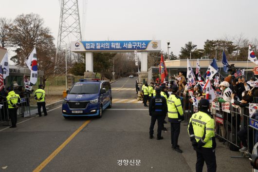 윤석열 대통령에 대한 구속 취소 결정이 내려진 7일 윤 대통령이 구금된 서울구치소에서 법무부 차량이 나오고 있다. 문재원 기자 |