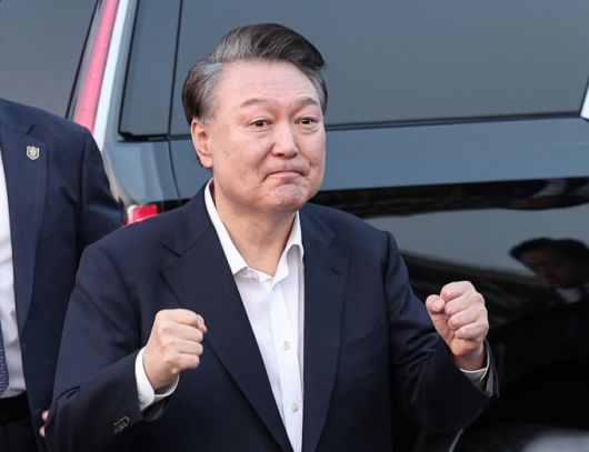 법원의 구속취소 청구 인용으로 석방된 윤석열 대통령이 8일 오후 서울 용산구 한남동 대통령 관저 앞에서 지지자들을 향해 주먹을 불끈 쥐며 인사하고 있다. 윤 대통령은 내란 우두머리 혐의로 지난 1월 26일 구속기소 된 지 41일 만, 1월 15일 체포된 후 52일 만에 자유의 몸이 됐다. /사진=뉴스1 |
