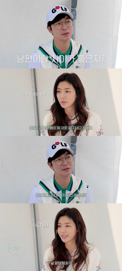 홍인규는 "한별이가 똑똑해서 '별일 없었구나. 잘 해결됐구나'라고 생각했다"고 얘기했고, 박한별은 "이렇게 하고 있다"며 남편을 항상 두 눈으로 감시하고 있다는 제스처를 취했다. 이에 홍인규는 "우리가 아는 게 다가 아니었구나 싶다"고 답했고, 박한별은 "날 믿어줬네?"라며 고마움을 표했다.