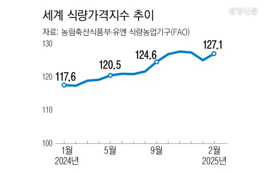 주요 식재료 가격도 상승세다. 유엔 식량농업기구(FAO)가 지난 8일 발표한 2월 세계 식량가격지수는 1년 전보다 8.3% 올랐다.