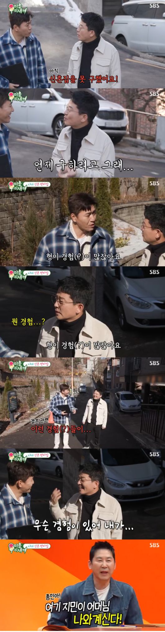 주택가에 등장한 김종민은 "아직 신혼집을 못 구했다"고 고백해 모두를 놀라게 했다.