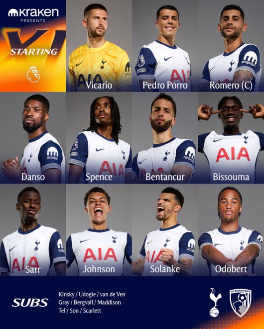 경기를 앞두고 토트넘이 선발 명단을 공개했다. 토트넘은 윌손 오도베르, 도미닉 솔란케, 브레넌 존슨, 파페 사르, 로드리고 벤탄쿠르, 이브 비수마, 제드 스펜스, 케빈 단소, 크리스티안 로메로, 페드로 포로, 굴리엘모 비카리오가 출격한다.
