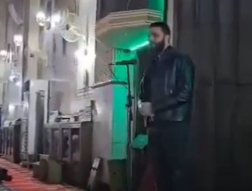 연설 연상은 시리아 수도 다마스쿠스의 알아크람 모스크(이슬람 사원)에서 촬영된 것으로 알려졌다.