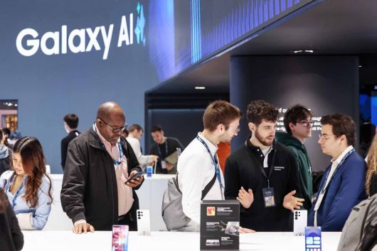 지난 6일(현지시간) 스페인 바르셀로나 피라 그란 비아 전시장에서 열린 '모바일 월드 콩그레스(MWC) 2025'를 찾은 관람객들이 삼성전자 부스에서 갤럭시 AI 기능을 체험하고 있다. 뉴스1 |