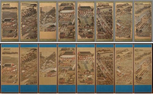 ‘평안감사도과급제자환영도’ 병풍은 일종의 기록화다. 도과 급제자 일행이 배를 타러 이동하는 순간부터 평양성의 동쪽 부벽루에서 벌인 연향(잔치), 환영 행사의 ‘정점’이었던 야간 뱃놀이 등을 화면에 담았다. 8개 화면을 모두 펼친 폭은 5m가 넘으며 19세기에 제작된 것으로 추정된다.