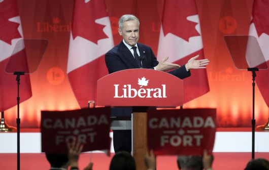 캐나다 집권 여당인 자유당의 새 대표로 선출된 마크 카니 전 캐나다중앙은행 총재가 9일(현지시간) 오타와에서 당 신임 대표로 첫 연설을 하고 있다. [AP] |