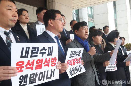 [서울=뉴스핌] 이호형 기자 = 더불어민주당 내란진상조사단 이성윤 의원이 10일 오전 서울 서초구 대검찰청 앞에서 윤석열 대통령에 대한 즉시항고 포기와 석방 지시에 대한 항의 방문 기자회견을 가지고 있다. 025.03.10 leemario@newspim.com