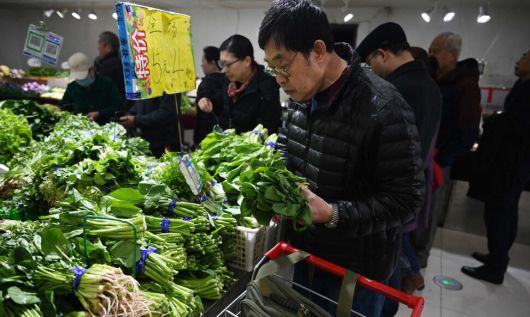 9일(현지시각) 중국 베이징의 한 시장에서 한 남성이 야채를 구입하고 있다. 베이징/AFP 연합뉴스 |