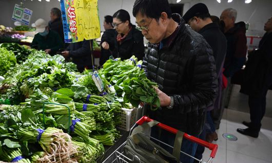 지난 9일(현지시간) 중국 베이징의 한 대형마트에서 사람들이 농산물을 고르고 있다. AFP연합뉴스 |