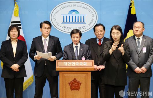 [서울=뉴스핌] 정일구 기자 = 윤상현 국민의힘 의원과 중도보수대연합 임원들이 11일 오전 서울 여의도 국회에서 윤석열 대통령 탄핵 기각 촉구 기자회견을 하고 있다. 2025.03.11 mironj19@newspim.com