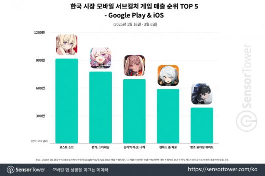 이러한 성과를 바탕으로, 센서타워는 《로스트 소드》가 국내 모바일 서브컬처 게임 중 다운로드 및 매출 순위 모두에서 1위를 기록했다고 밝혔다. 더불어, 한국 시장에서만 올린 매출만으로도 전 세계 서브컬처 게임 매출 순위 30위에 올랐으며, 2025년 현재까지 출시된 서브컬처 게임 중 가장 높은 매출을 기록한 것으로 집계됐다.