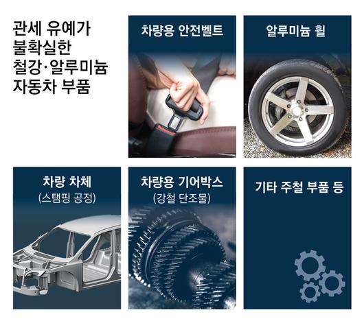 그러나 11일 본보가 미국 상무부의 이행 지침을 확인해 본 결과 철강·알루미늄 관세 부과가 유예되는 자동차 부품 품목은 5개였다. 일각에선 대미 수출 자동차 부품 최소 65개 중 10%도 안 되는 숫자만이 이번 유예에 포함됐다는 분석이 나온다. 지난해 한국산 자동차 부품의 미국 수출액은 82억2000만 달러로, 자동차, 반도체에 이어 세 번째로 많이 수출된 품목이었다. 상무부가 추후 관보를 통해 관세를 부과하는 품목이 추가될 수 있다고 밝힌 만큼 한국산 자동차 부품에 언제 관세가 부과될지도 미지수라는 관측이 제기된다.