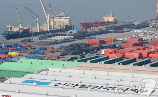 11일 오후 경기 평택시 포승읍 평택항 수출 야적장에 철강 제품이 쌓여 있다. 미국 정부는 오는 12일(현지시간)부터 한국을 포함한 모든 국가의 철강‧알루미늄 제품에 25% 일괄 관세를 부과할 예정이다. 2025.3.11/뉴스1 ⓒ News1 김영운 기자 |