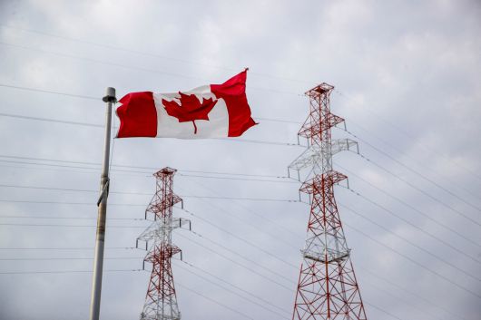 11일(현지시간) 캐나다 온타리오주 콘월의 RH 손더스 발전소 인근에서 캐나다 국기가 펄럭이고 있다. 로이터연합뉴스 |
