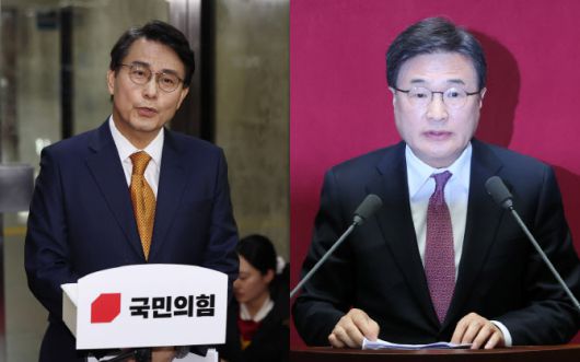 왼쪽부터 윤상현 국민의힘 의원, 김대식 국민의힘 원내수석대변인. (사진 = 연합뉴스) |