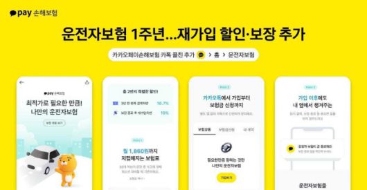 [이데일리 김형일 기자] 카카오페이손해보험이 운전자보험 출시 1주년을 맞아, 재가입 사용자에게 보험료 10% 할인하는 등 혜택과 보장을 강화한다고 12일 밝혔다.
