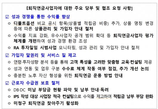 퇴직연금 사업자에 대한 주요 당부·협조 요청 사항 /사진=고용부·금감원 |