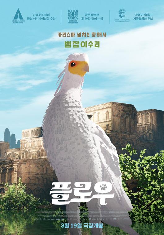 대홍수가 세상을 덮친 뒤, 유일한 피난처가 된 낡은 배를 타고 세상 끝으로 항해를 시작한 ‘고양이’와 ‘골든 리트리버’, ‘카피바라’, ‘여우원숭이’, ‘뱀잡이수리’의 눈부신 모험담 ‘플로우’에서 서로의 차이점에도 불구하고 따뜻한 우정을 쌓는 다섯 캐릭터들의 사랑스러움이 고스란히 담긴 캐릭터 포스터 5종이 공개됐다.
