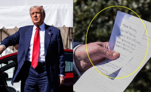 특히 취재진은 트럼프 대통령이 들고 있던 연설문과 함께 특이한 메모를 포착했다. 이 메모에는 테슬라X, S, Y 등의 세세한 가격과 함께 ‘테슬라는 한 달에 299달러 또는 3만 5000달러에 구매할 수 있다’고 적혀있다. 이에 대해 비즈니스 인사이더 등 현지 언론은 “이 메모가 테슬라 판매 홍보문구처럼 보인다”고 지적했다.