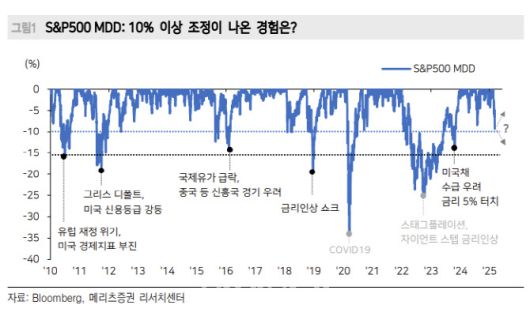 황수욱 메리츠증권 연구원은 “S&P500 지수는 전고점 대비 9.3% 하락하며 평균적인 조정 수준인 10%에 근접했다”며 “S&P500 12개월 주가수익비율(PER) 기준 20배가 작년 조정 국면에서 저점이었던 점을 들어 단기 바닥에 근접했을 가능성이 있다”고 진단했다.