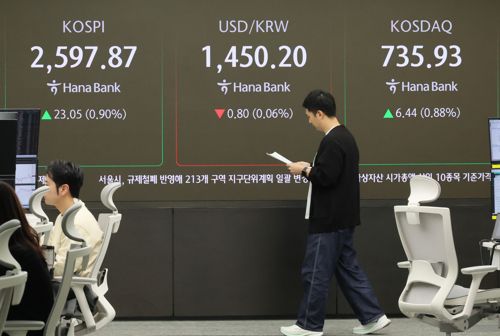 이날 코스피는 전장보다 0.90% 오른 2598.06에 출발한 뒤 2,600선 안착을 거듭 시도하고 있습니다.