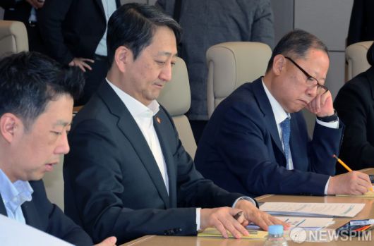[서울=뉴스핌] 양윤모 기자 = 안덕근 산업통상자원부 장관이 13일 오전 서울 포스코센터에서 개최된 '美 관세 대응 철강업계 간담회'에 참석 모두발언을 마치고 자료를 살펴보고 있다. 이 자리에는 이희근 포스코 사장,서강현 현대제철 사장,박성희 KG스틸 사장, 김대엽 TCC스틸 부사장,변영길 세아제강 본부장,최철균 넥스틸 본부장,김도연 동국씨엠 전무,이경호 철강협회 부회장등이 참석 했다. 2025.03.13 yym58@newspim.com