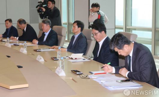 [서울=뉴스핌] 양윤모 기자 = 철강협회 관계자들이 13일 오전 서울 포스코센터에서 개최된 '美 관세 대응 철강업계 간담회'에 참석 안덕근 산업통상자원부 장관의 모두발언을 경청하고 있다. 이 자리에는 이희근 포스코 사장,서강현 현대제철 사장,박성희 KG스틸 사장, 김대엽 TCC스틸 부사장,변영길 세아제강 본부장,최철균 넥스틸 본부장,김도연 동국씨엠 전무,이경호 철강협회 부회장등이 참석 했다. 2025.03.13 yym58@newspim.com |