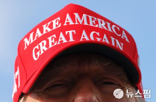 '미국을 다시 위대하게'(Make America Great Again, MAGA) 모자 쓴 도널드 트럼프 미국 대통령. [사진=로이터 뉴스핌] |