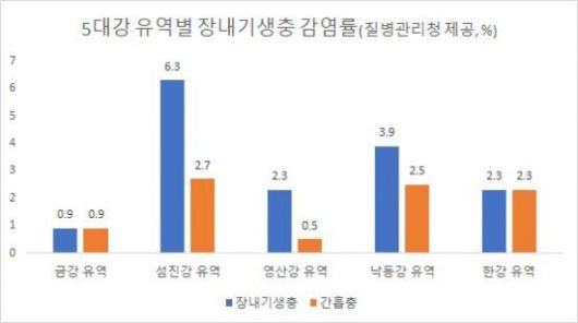 5대강 유역별 장내기생충 감염률.진안군 제공 |