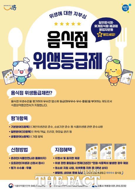 [더팩트|시흥=김동선 기자] 경기 시흥시는 소비자의 선택권을 보장하고 안전하고 건강한 식생활 문화 정착을 위해 '음식점 위생 등급제' 지정업소를 올해 말까지 상시 모집한다고 12일 밝혔다.
