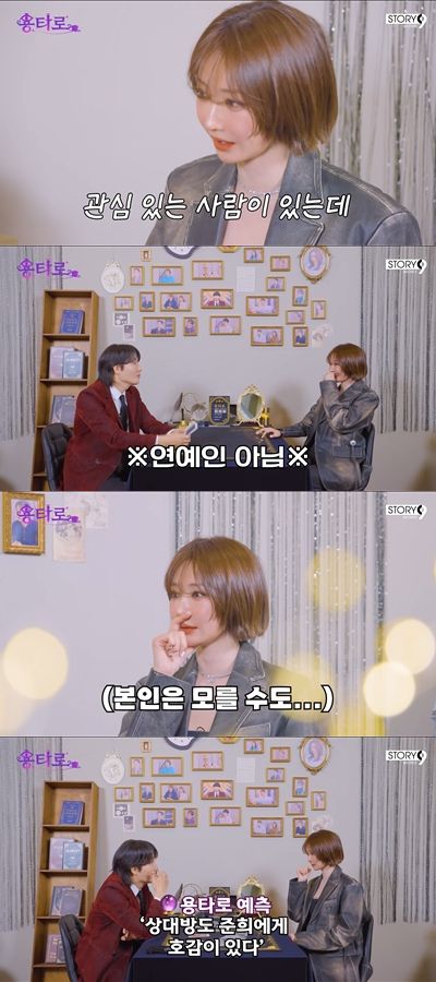 이용진이 타로 상담을 시작하며 첫 번째 질문을 물었고, 고준희는 "관심 있는 사람이 있는데 그 사람도 저한테 마음이 있을지?"라며 현재 짝사랑 상대가 있음을 고백했다.