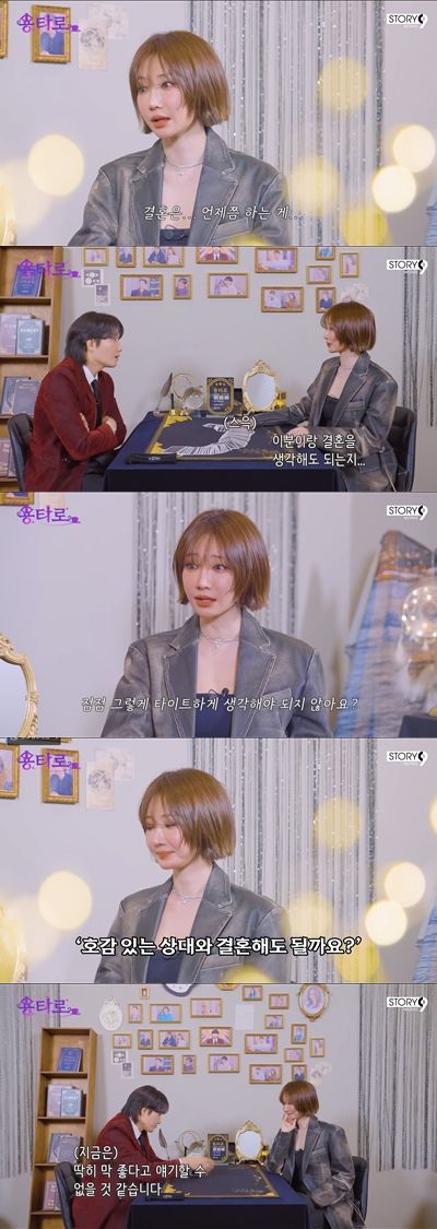 고준희는 연애운에 이어 결혼 운에 대해서도 궁금하다며 "결혼은 언제쯤 하는 게 (좋냐)"고 물었고, 이용진은 "진짜 타로 보러 오셨네"라며 웃음을 자아냈다.