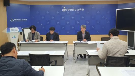 전창현 경남교육청 교육활동보호담당관(맨 오른쪽)이 13일 도교육청 브리핑룸에서 2025년 교육활동보호담당관 주요 업무를 브리핑하고 있다. [사진=경남교육청] 2025.03.13 |