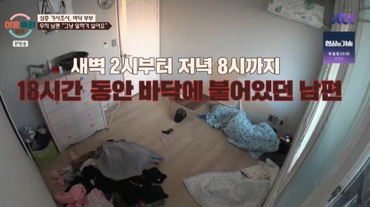 (엑스포츠뉴스 김예은 기자) 바닥 남편이 18시간 동안 누워 있는 모습으로 충격을 줬다.