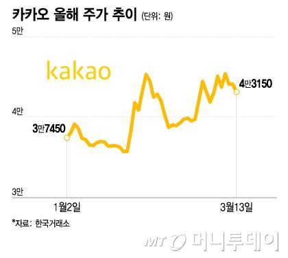 카카오 올해 주가 추이/그래픽=이지혜 |