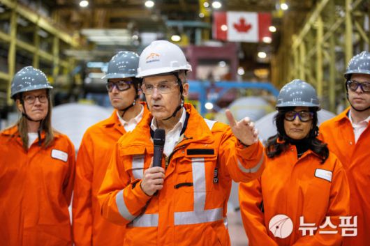 캐나다 철강 업체를 방문한 마크 카니 차기 총리. [사진=로이터 뉴스핌] |