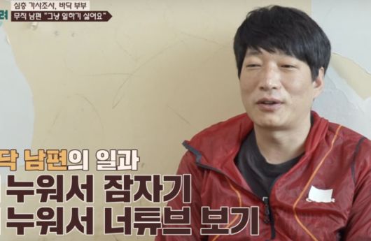 같은 시각 낮2시, 남편은 빨래더미 옆에서 바닥에 붙어있었다. 마치 애벌레를 연상하게 했다.알고보니 새벽2시에 잠든 남편. 무려 12시간을 딥슬립했는데, 일어나고도 또 잠을 청했고 24시간 바닥에서 떨어지지 않았다. 알고보니 무직상태였다.남편은 “많이 쉬면 1년은 논다”며 “일은 그냥 하기 싫다”며 솔직하게 말해 더욱 황당하게 했다.