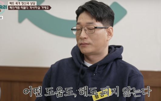 이어 정신과 상담을 진행했다. 남편에 대해 전문의는 “기생충, 남편이 집안 역할을 전혀 안 한다”고 하며이렇게 까지 하는 이유를 묻자 아내는 “연민과 사랑이 있다, 나가서 나 없이 어떻게 될까싶다”고 남편을 안쓰러워 했다.