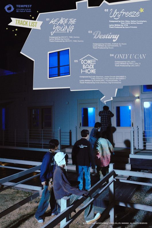 템페스트는 14일 0시 공식 SNS를 통해 여섯 번째 미니앨범 '리: 풀 오브 유스(RE: Full of Youth)'의 트랙리스트 이미지를 공개했다.
