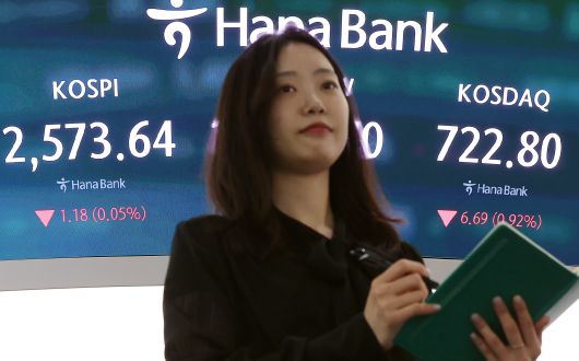 이날 오전 9시 5분 코스피지수는 전 거래일 대비 3.55포인트(0.14%) 내린 2570.09를 기록하고 있다. 외국인과 기관투자자가 각각 542억원, 20억원어치 순매도하는 중이고 개인투자자 홀로 573억원 순매수하고 있다.