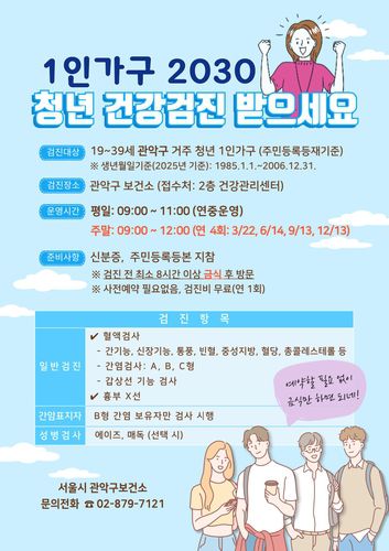 관악구에 주소지를 둔 19∼39세 청년 1인 가구라면 누구나 검진 받을 수 있다.