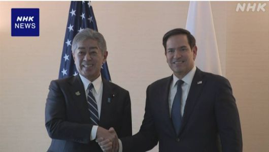 이와야 다케시 日외무상(왼쪽)과 마르코 루비오 美국무장관 [사진=NHK 캡처] |