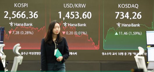이날 코스피지수는 전 거래일 대비 7.28포인트(0.28%) 내린 2566.36을 기록했다. 지수는 전날 대비 8.46포인트(0.33%) 내린 2565.18로 출발한 뒤 2559.24까지 밀리기도 했으나, 낙폭을 줄이고 2560선을 지키며 장을 마쳤다.