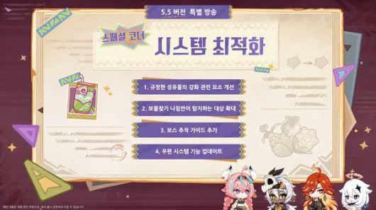 방송을 진행한 성우들은 "5.5 버전 내용 정말 풍성했다. 게임 내외적으로 흥미로운 콘텐츠가 많았다. 비옥한 터전으로 가서 얀사와 곳곳을 누비거나 바레사를 빨리 만나고 싶다. 이번 버전으로 나타의 여섯 부족을 모두 만난다. 앞으로도 신나는 여행 이어가길 바란다"며 막을 내렸다.